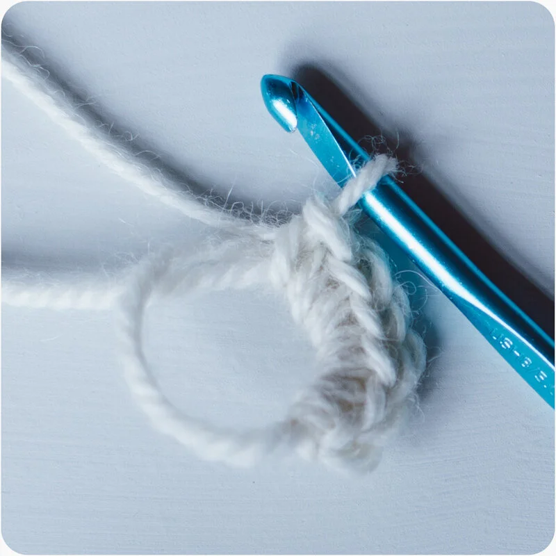 Working into a magic loop, 1 ch, 6 dc. Join.