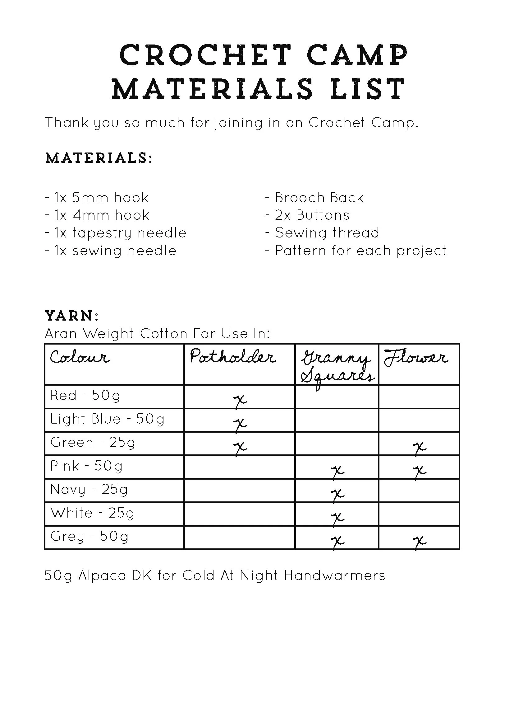 Crochet Camp: Materials List