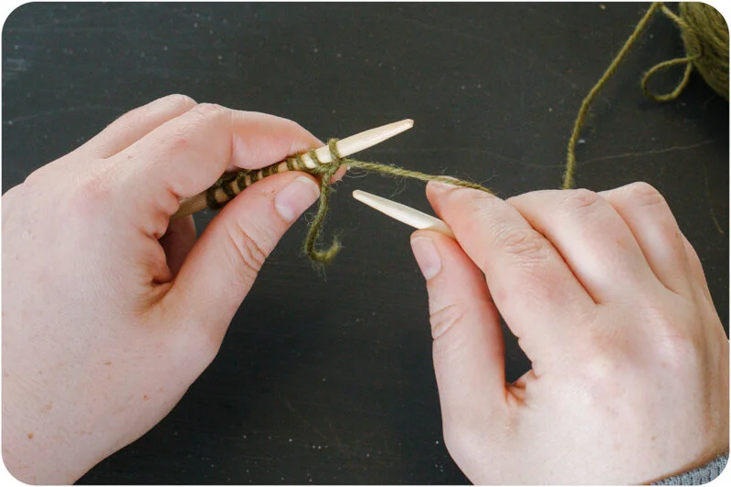 3. Using your right needle, pull the loop you just made on your right needle through the loop on your left needle.